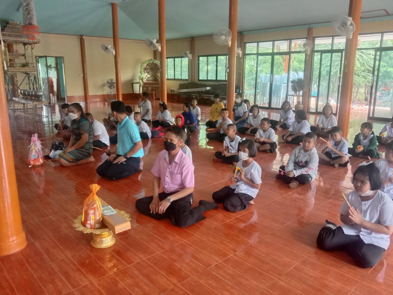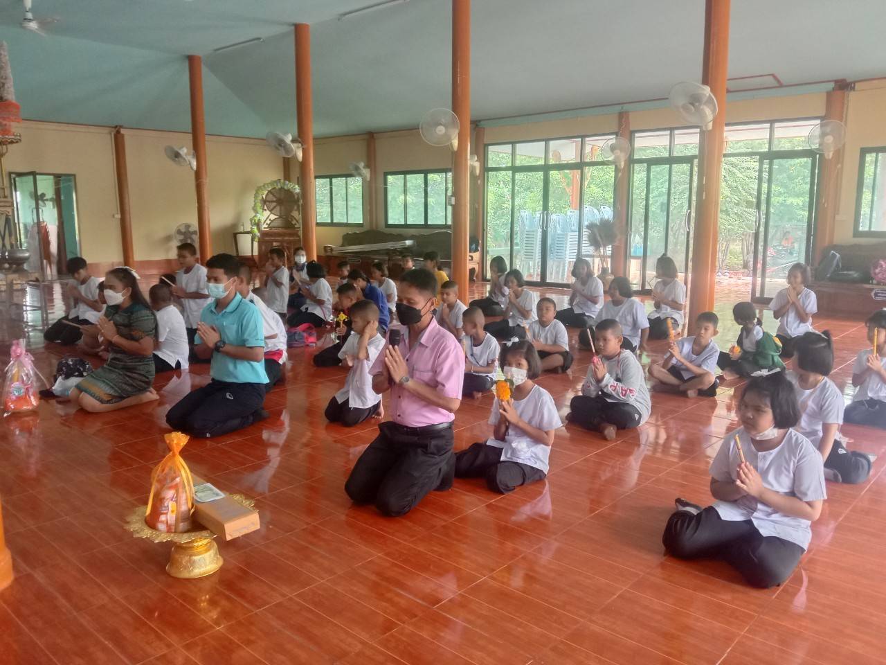 วันอังคารที่ 12 กรกฎาคม 2565 โรงเรียนดอนน้ำใสวิทยา นำนักเรียนถวายเทียนพรรษา เครื่องสังฆทานและปัจจัย เนื่องในวันอาสาฬหบูชาและวันเข้าพรรษา ณ วัดถนนวารี